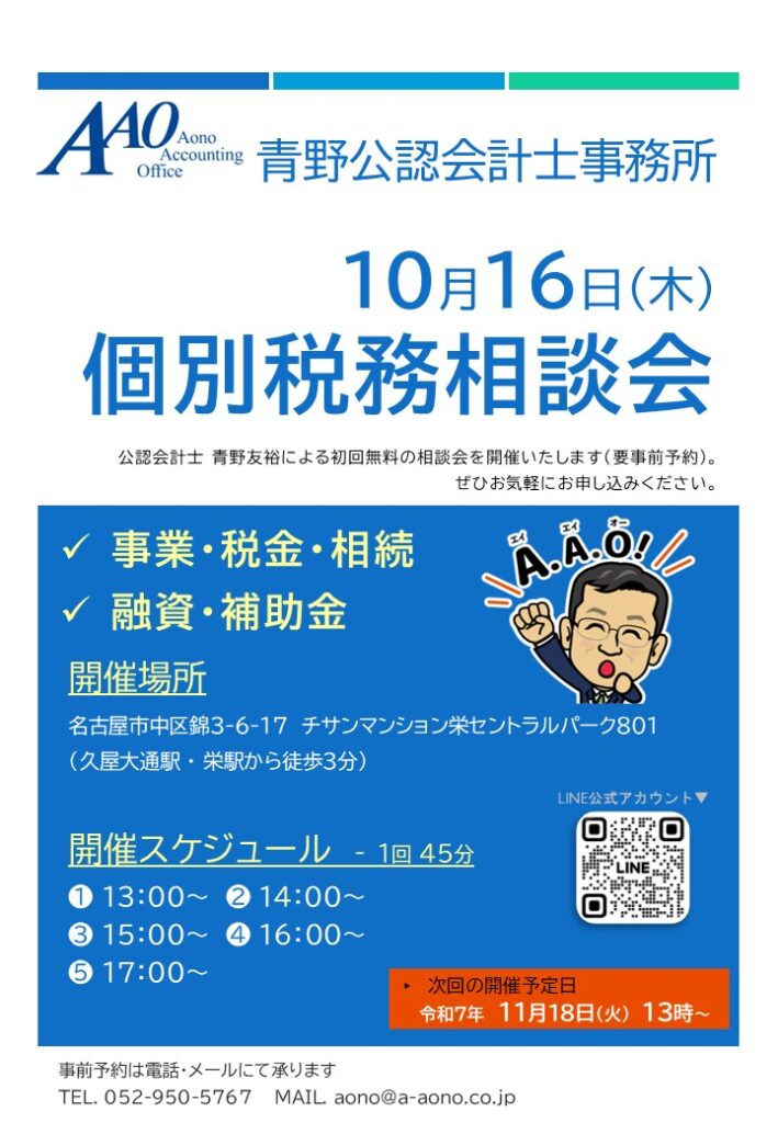 次回個別相談会 令和7年11月18日 (木曜日)開催予定!